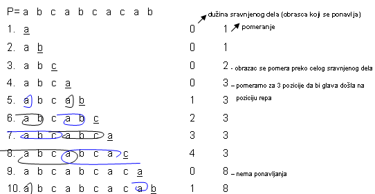 b) prikazati po koracima postupak sravnjivanja obrasca sa tekstom korišcenjem algoritma KMP.