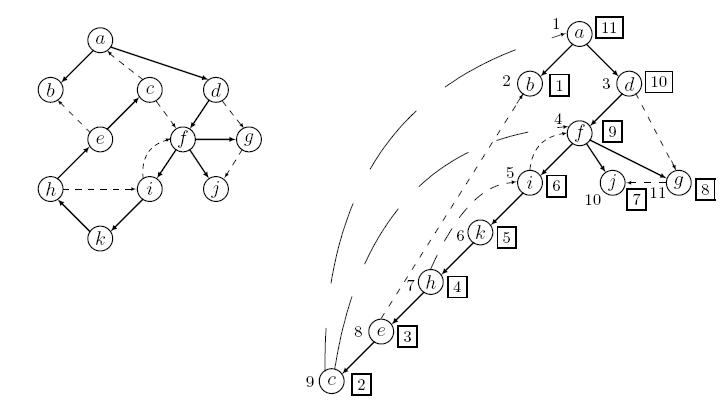 Lema1 (stavke 1-4): Grana (u, v) usmerenog grafa G je povratna ako i samo ako prema odlaznoj numeraciji (DFS) čvor u prethodi čvoru v, tj. u.Post <= v.Post