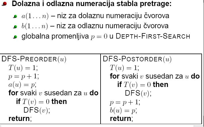 Algoritam se moze realizovati tako sto ce se funkciji DFS() dodati
