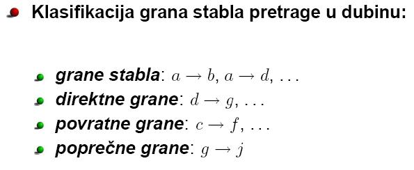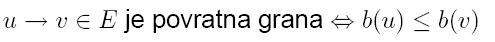 Ako grana (u,v) jeste povratna i v!=u, onda: v.Post > u.Post (jer, v je pravi predak od u)