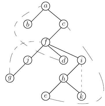 Maksimalni skup grana grafa bez ciklusa formira povezujuće stablo kod povezanih grafova (odnosno povezujuću sumu kod nepovezanog grafa). Dakle, minimalni skup F je komplement ma kog povezujućeg stabla grafa. (videti glavu 6.6 udbenika).