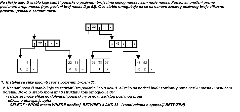 REŠENJE: Kako je zauzeto polje na poziciji 16 => mora biti zauzeto i polje na poziciji 8 za čuvanje oca čvora 16. Zato što po definiciji implicitne reprezentacije stabla preko niza, element A[16] odgovara čvoru čiji predak je čvor pridružen elementu A[8]. Sličnim rezonom, dolazi se do zaključka da moraju biti zauzete za pretke i pozicije 4, 2, 1. Dakle, minimalan broj elemenata je 5. ( log216 +1)