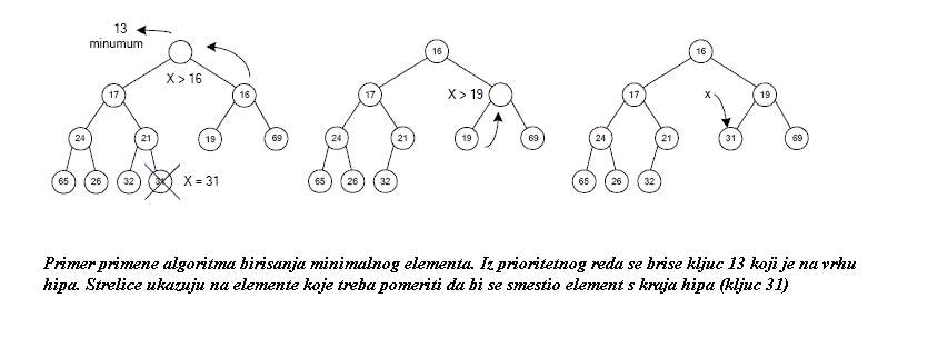 minimalnim ključem pomoću funkcije delete_min(). Minimalni element se nalazi u korenu