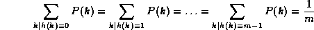 Ako je P(k) verovatnoća da se ključ k pojavljuje u nasem skupu, tada bi, ako postoji m polja u nasoj hash tabeli, uniformna hash funkcija h(k) osigurala da: