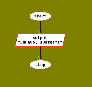 Opisati/formirati algoritam koji ispisuje na izlaz poruku "Zdravo, svete!!!"