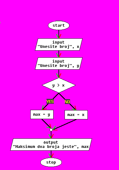 Formirati/opisati algoritam koji za učitana dva broj sa ulaza ispisuje na izlaz njihov maksimum.