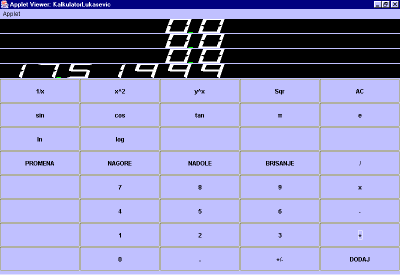 public class KalkulatorLukasevic extends JApplet {