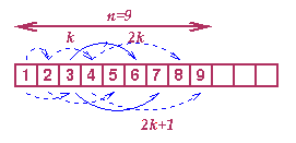 REŠENJE: Kako je zauzeto polje na poziciji 16 => mora biti zauzeto i polje na poziciji 8 za čuvanje oca čvora 16. Zato što po definiciji implicitne reprezentacije stabla preko niza, element A[16] odgovara čvoru čiji predak je čvor pridružen elementu A[8]. Sličnim rezonom, dolazi se do zaključka da moraju biti zauzete za pretke i pozicije 4, 2, 1. Dakle, minimalan broj elemenata je 5. ( log216 +1)