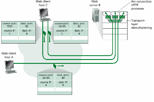 Server razlikuje segmente od različitih klijenata po izvornim IP adresama i izvornim brojevima portova.
